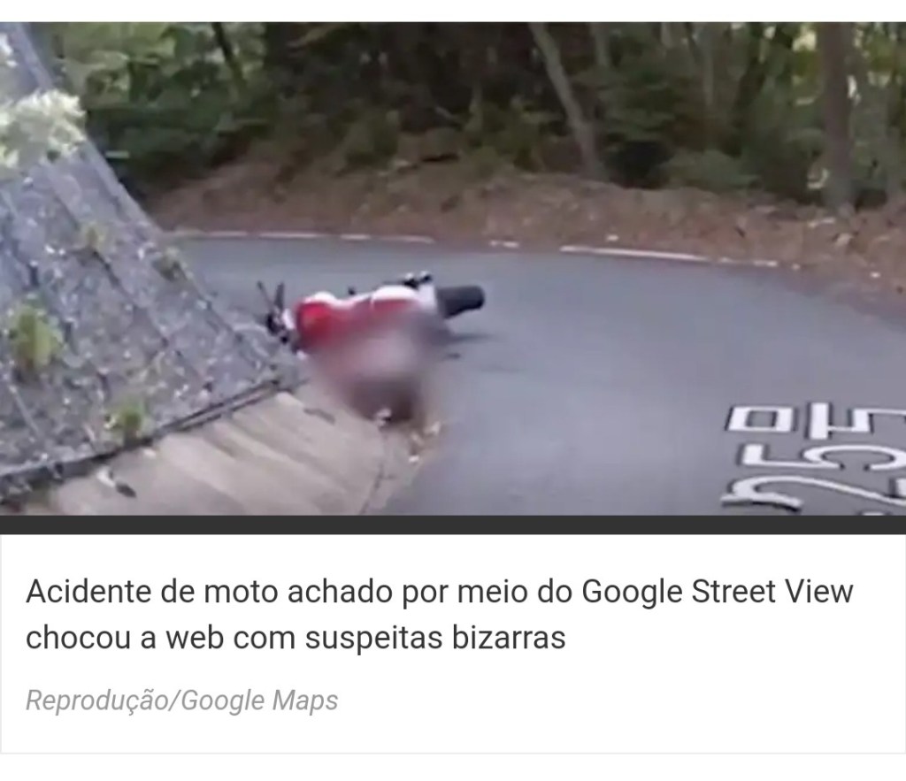Um acidente de moto captado por um carro do Google — responsável pelo mapeamento do serviço Street View — expôs um detalhe sombrio, que gerou diversos comentários e teorias entre internautas. O registro veio à tona recentementeme, por meio da rede social Reddit.