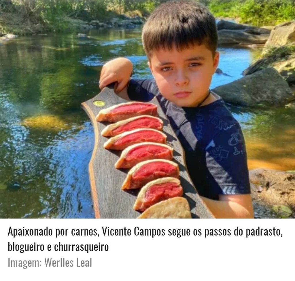 Dois milhões. Esse é o número de visualizações orgânicas do vídeo que mostra um menininho na churrasqueira cozinhando camarão temperado com limão colhido na hora. As imagens foram captadas e publicadas em junho por Werlles Leal, 31. Sem intenção de “bombar”, ele filmou seu enteado, Vicente Campos, de 8 anos, em um dos seus momentos de interação com fogo e carne. O momento curioso viralizou e acabou em outras redes sociais dedicadas ao churrasco….