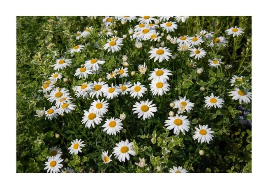 A margarida (Leucanthemum x superbum) é um híbrido resistente desenvolvido em 1800.