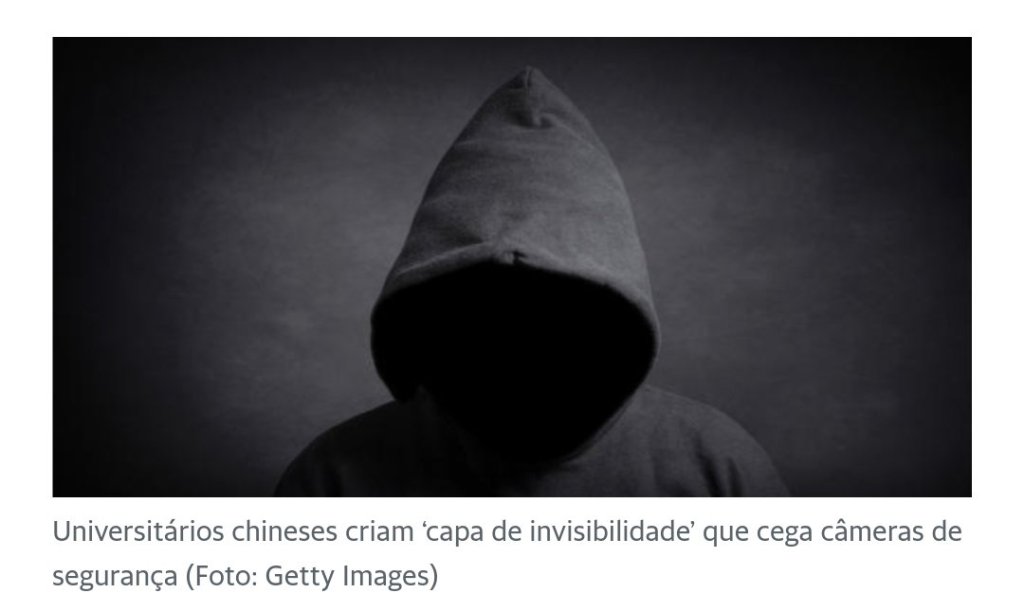 Estudantes da Universidade de Wuhan na China desenvolveram uma “capa de invisibilidade” projetada para esconder os usuários das câmeras de segurança. O InvisDefense é um casaco de baixo custo de produção que pode ser usado dia ou noite para evitar a detecção de sistemas de segurança monitorados por inteligência artificial.