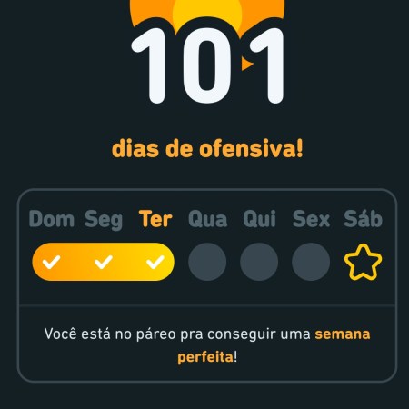 Já tenho 101 dias de ofensiva em um idioma! Venha também para Duolingo