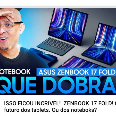 Assista a “ISSO FICOU INCRIVEL! ZENBOOK 17 FOLD! O futuro dos tablets. Ou dos noteboks?” no YouTube