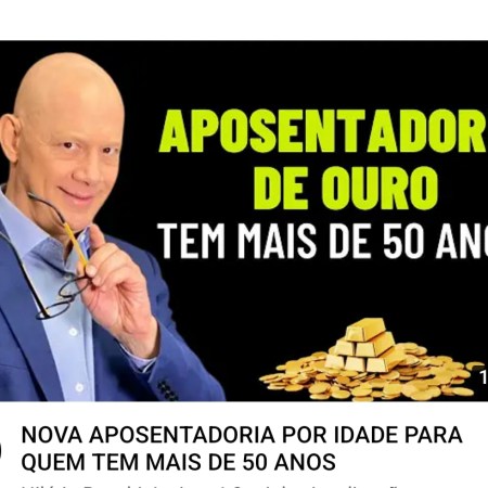 Assista a “NOVA APOSENTADORIA POR IDADE PARA QUEM TEM MAIS DE 50 ANOS” no YouTube