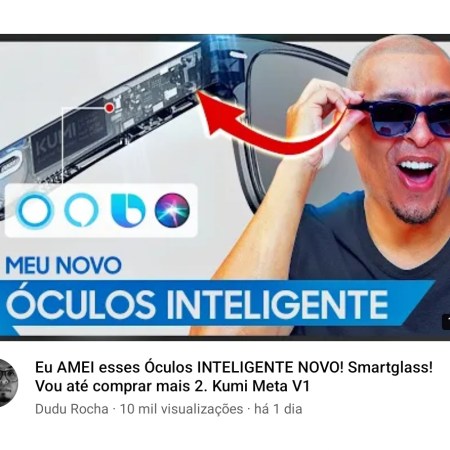 Assista a “Eu AMEI esses Óculos INTELIGENTE NOVO! Smartglass! Vou até comprar mais 2. Kumi Meta V1” no YouTube