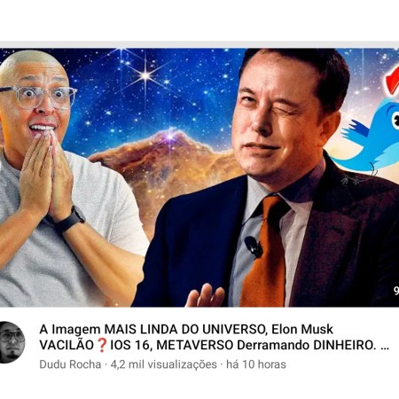 Assista a “A Imagem MAIS LINDA DO UNIVERSO, Elon Musk VACILÃO❓IOS 16, METAVERSO Derramando DINHEIRO. DuduNews#7” no YouTube
